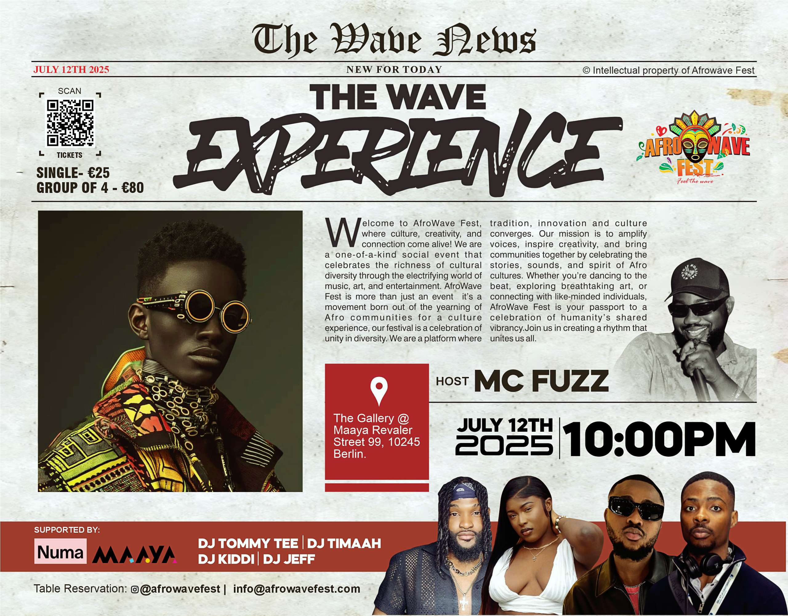 July 12 @ 10:00 pm - July 13 @ 6:00 am The Wave Experience 2025 MAAYA BERLIN Revaler Str. 99, Berlin, Germany Afrobeats, Amapiano, Afro-house, Alté, Afro-fusion, Afro-pop